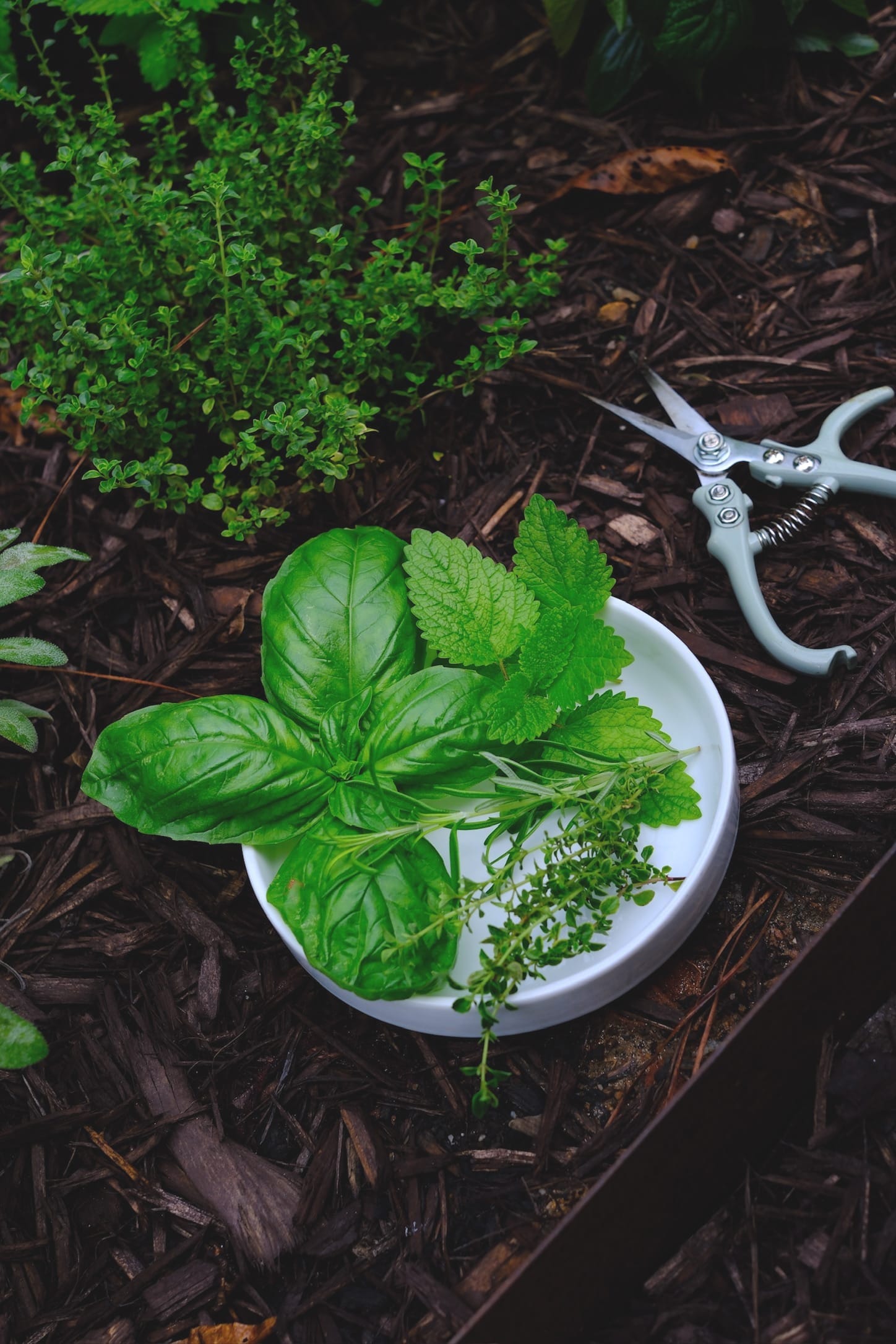 - Fresh herbs such as basil, lemon thyme, rosemary & lemon balm