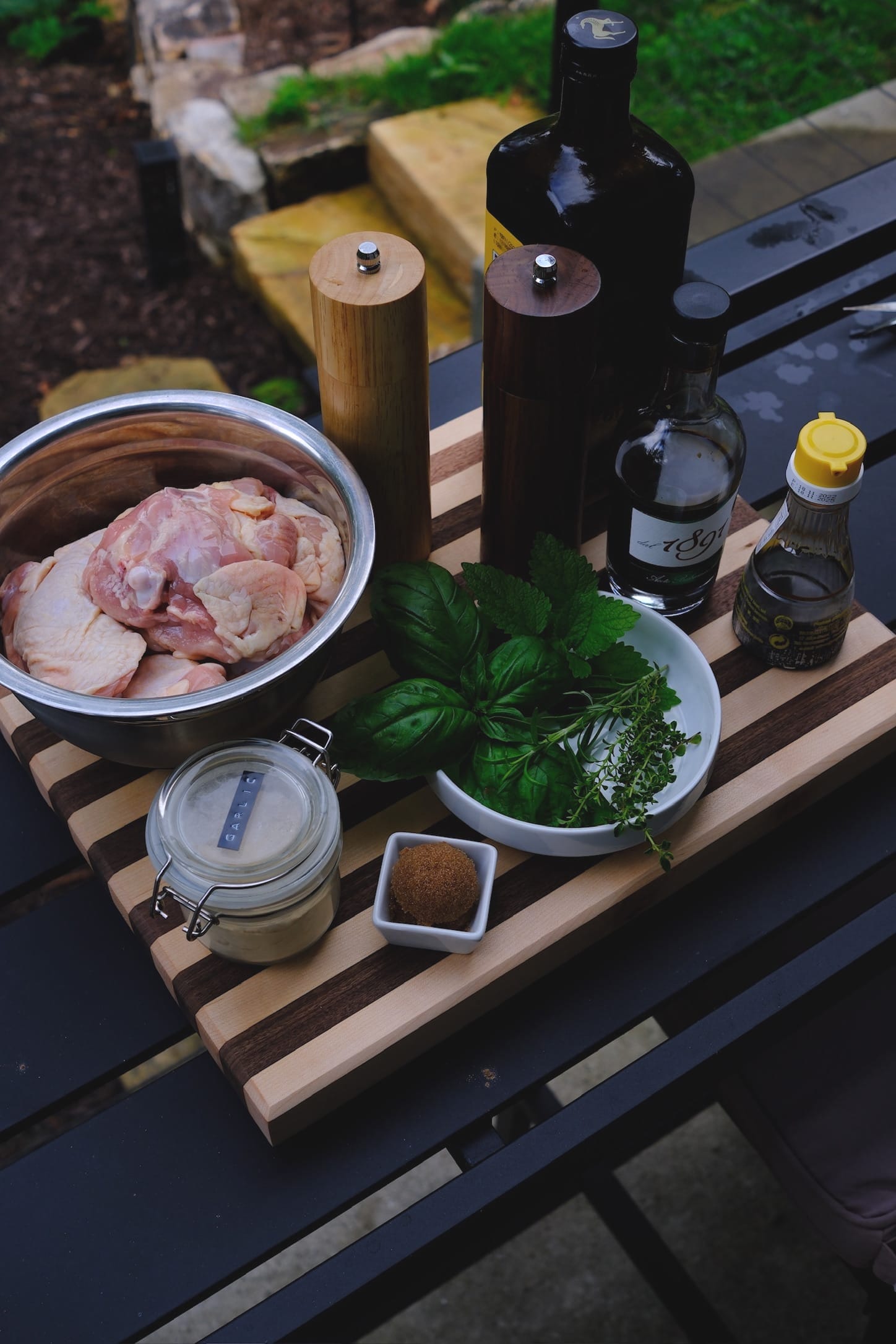 I recently planted a medicinal herb garden, and for the marinade I did my best to take advantage of what I had, which included basil, lemon thyme, rosemary, and lemon balm. Lemon balm has been great to include when I forget to buy lemons, though a squeeze of fresh citrus on top never hurts either.