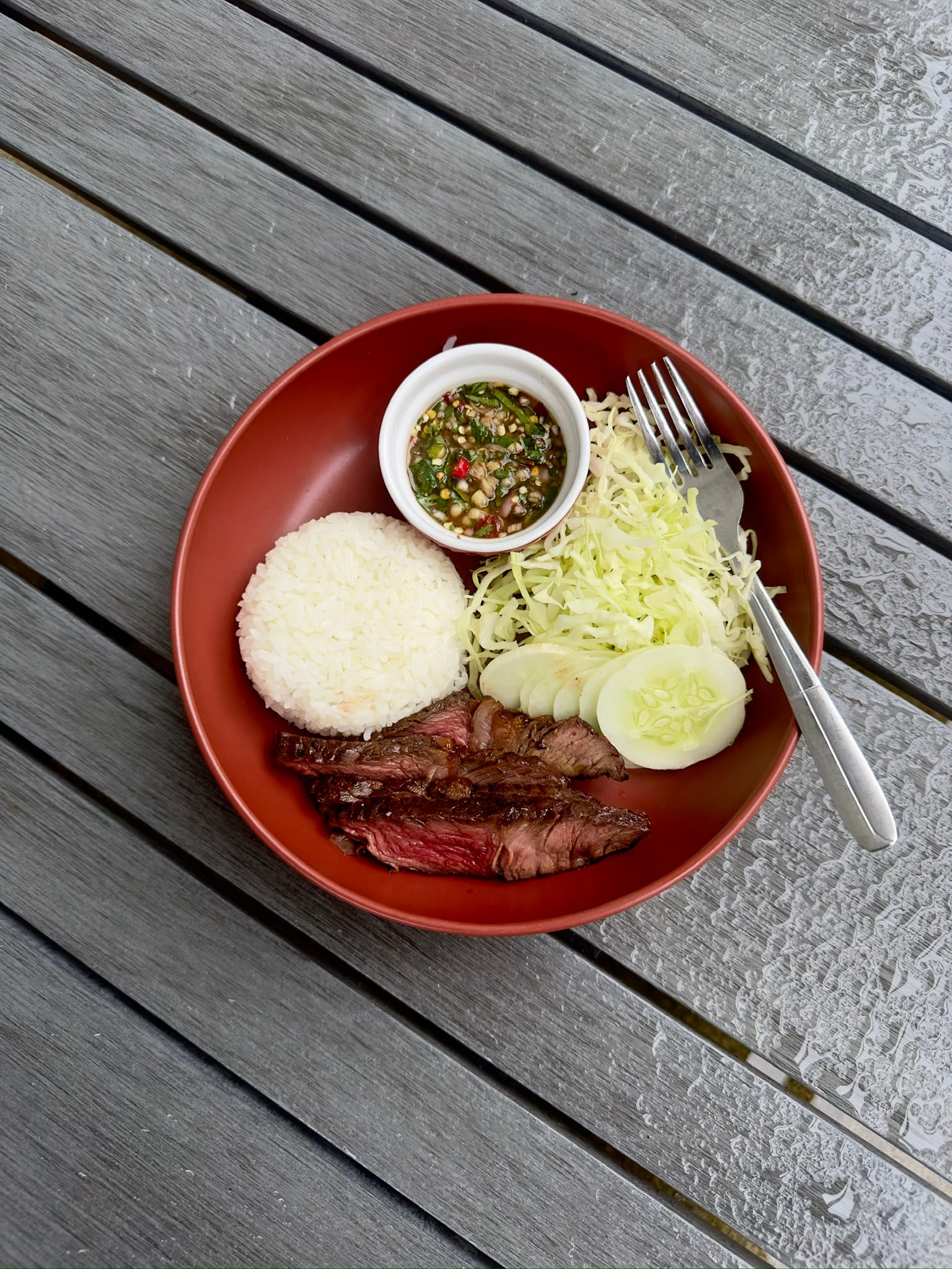 This recipe is inspired by Thai Crying Tiger steak, but a bit quicker to prepare during a weeknight, and useful for when you're short on ingredients. Right now I have an abundance of Dragon's Egg cucumbers - the spice from the sauce is a great motivator to chow down on a whole cucumber in one sitting!